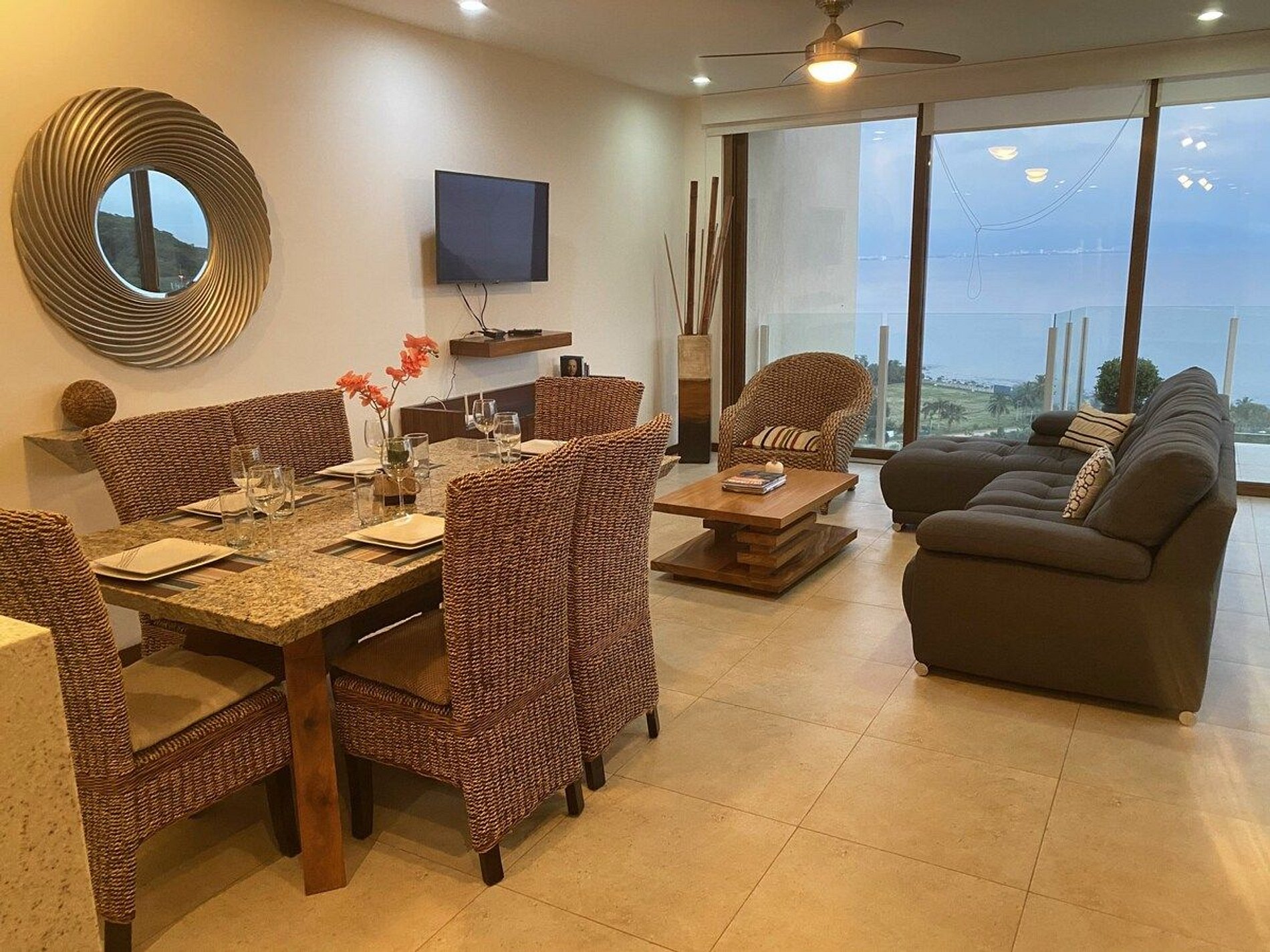 3 recámaras y 3 baños, sala, comedor y cocina equipada. En el piso 8, con espectacular VISTA AL MAR desde su terraza con asador, comedor y recámara principal. Existen 3 albercas espectaculares: una es la hermosa alberca infinity dentro del desarrollo; una más en el rooftop del edificio Delta, y la otra en nuestro exclusivo Club de Playa. Tenemos WiFi; Smart TV; juegos infantiles.