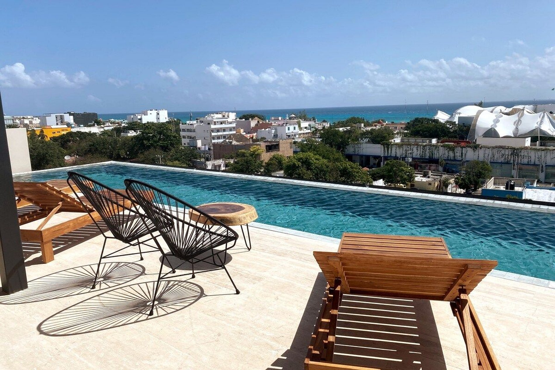 Fabuloso condominio nuevo en el corazón de Playa del Carmen, a unos pasos de la 5ª Avenida. Precioso roof top con alberca con hermosa vista al mar. Totalmente equipado y amueblado.